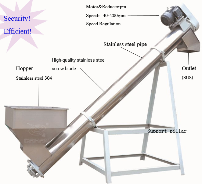Removable stainless steel vertical screw conveyor usually used for the food industry,such as sugar,chilli,soybean,rice and all kinds of grains,up to certain height.easy mobility.